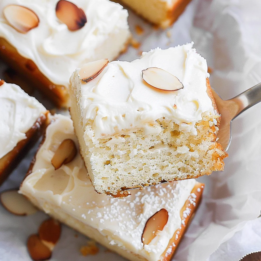 Irresistible Snowy Vanilla Almond Cake Squares Recipe