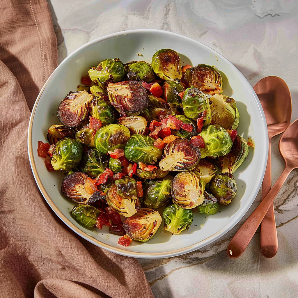 Irresistible Roasted Brussels Sprouts with Bacon-Maple Vinaigrette