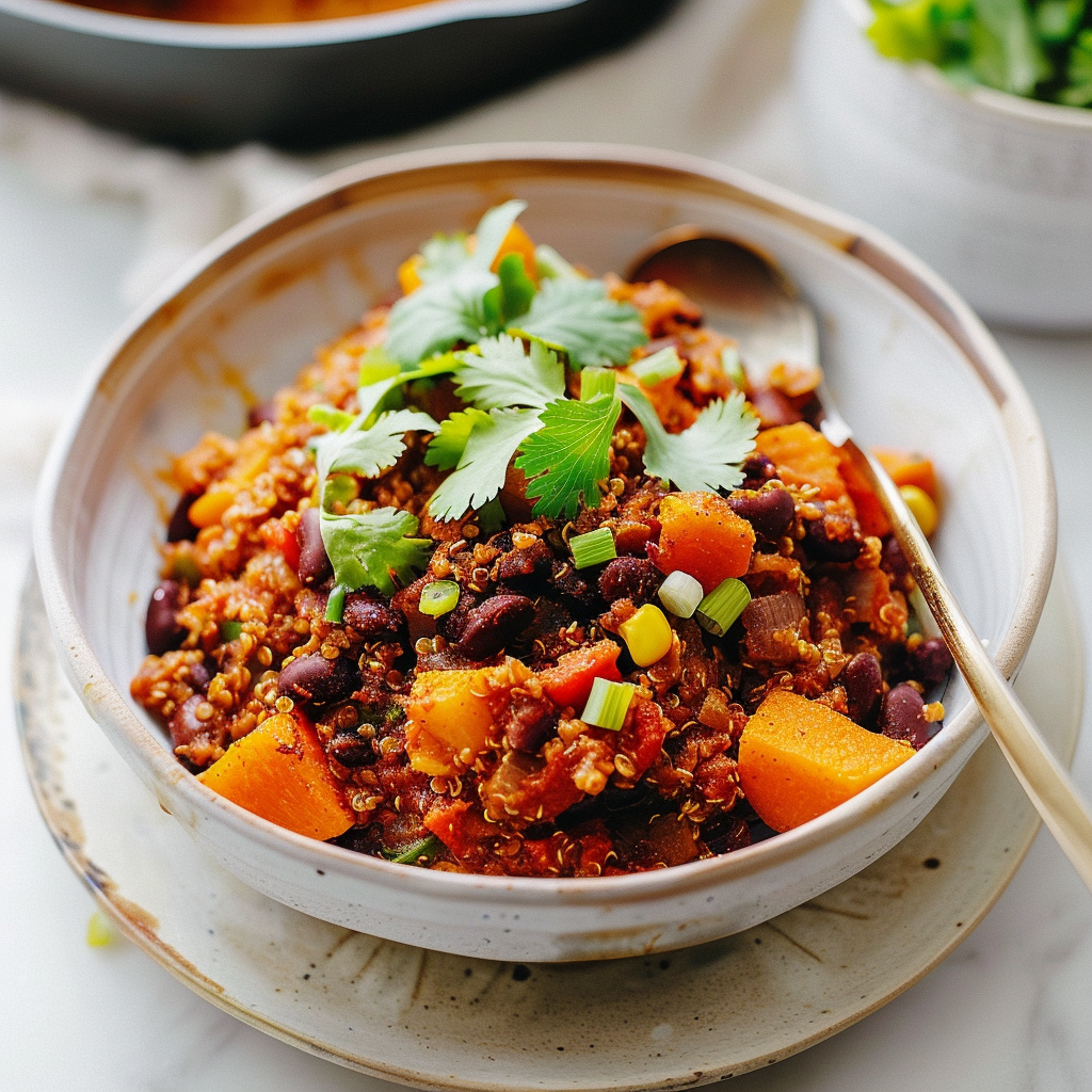 Hearty Sweet Potato & Black Bean Quinoa Chili Recipe