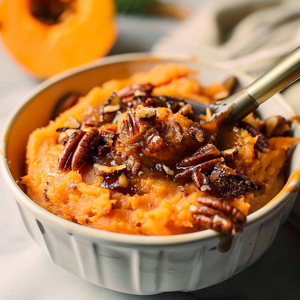 Irresistible Maple Candied Pecan Sweet Potato Mash