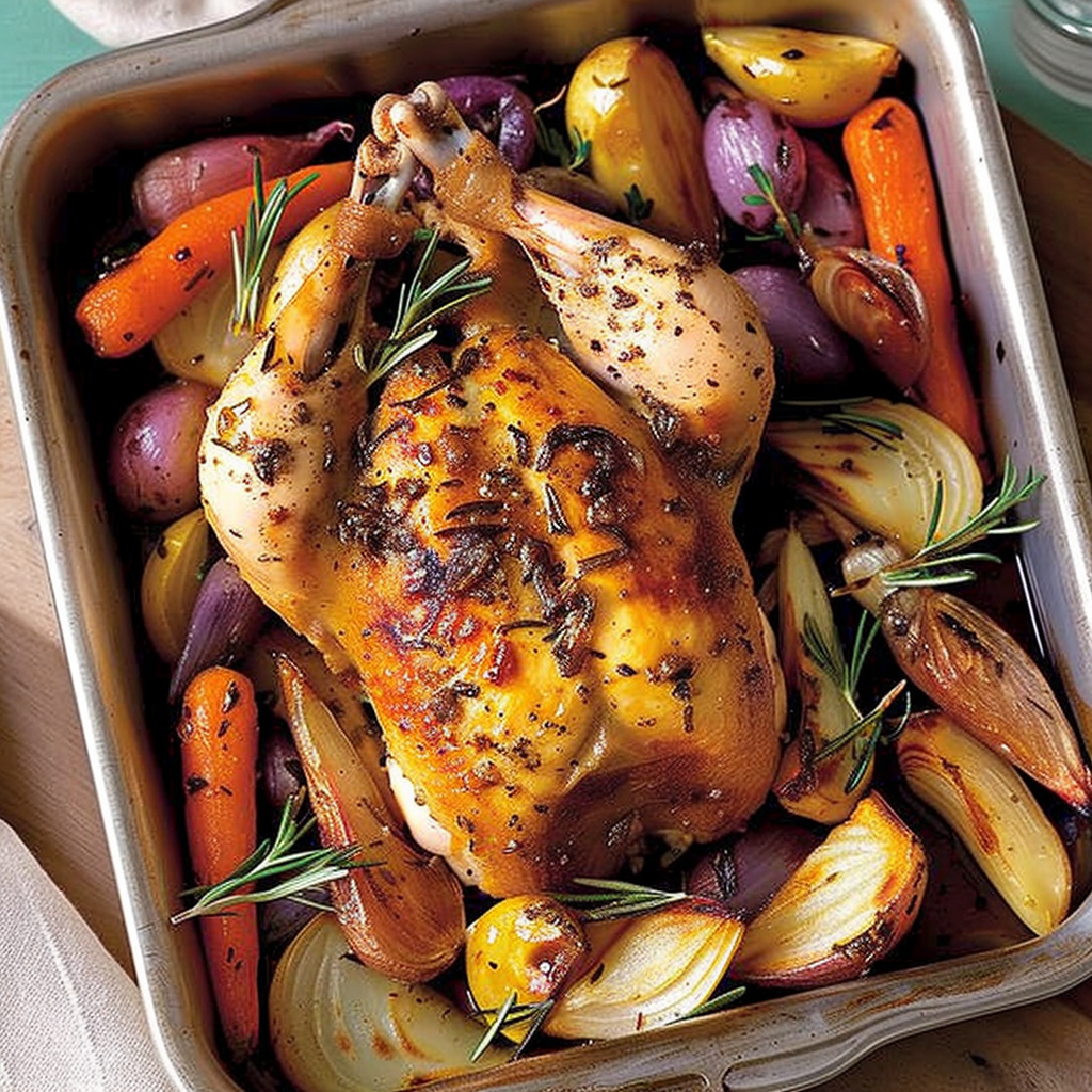 Flavorful Lemon Thyme Roast Chicken with Root Veggies