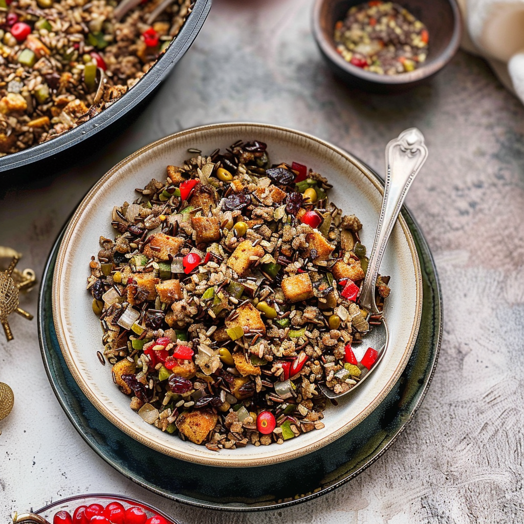 Savory Wild Rice, Cranberry & Sausage Stuffing Recipe