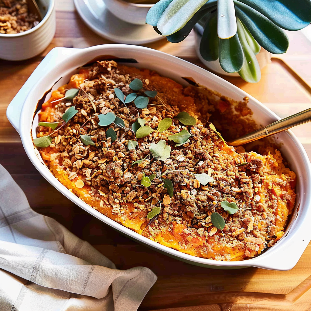 Irresistible Brown Sugar & Bourbon Sweet Potato Casserole