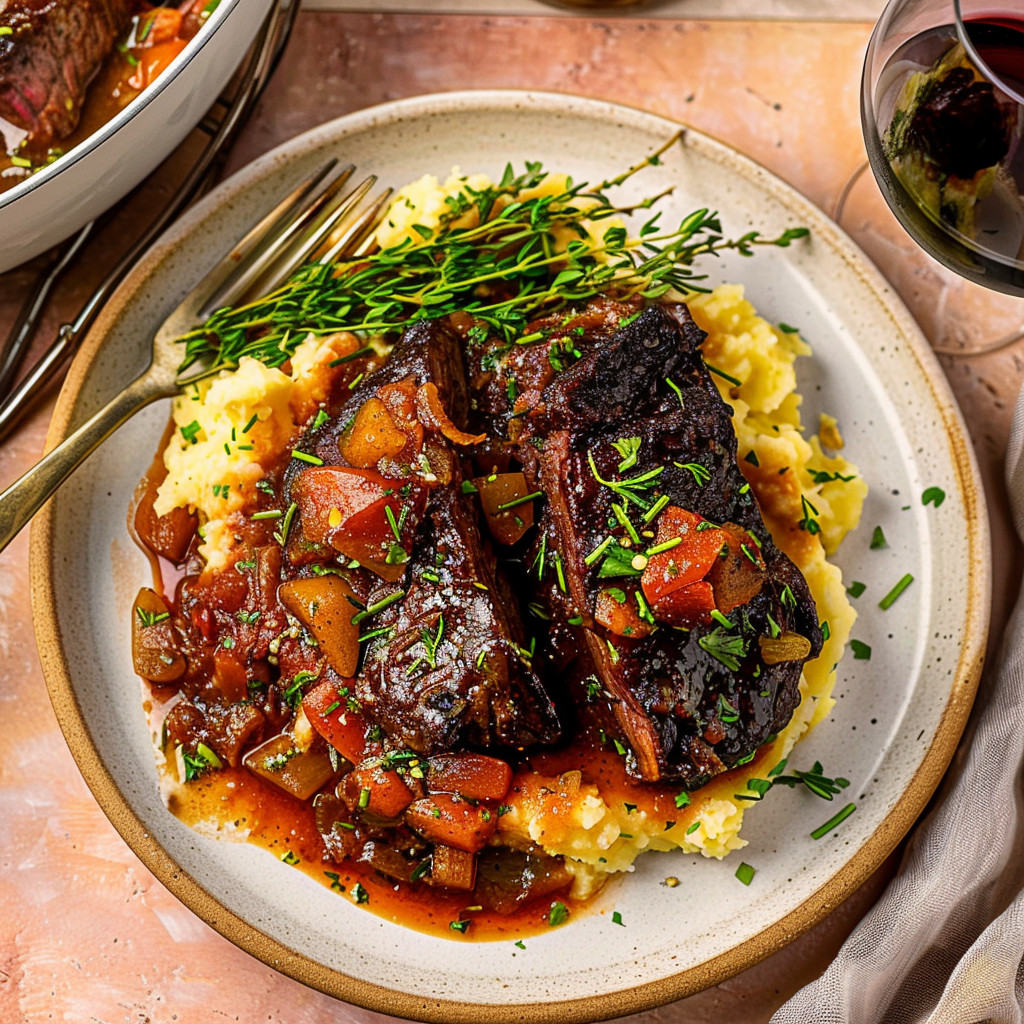 Indulge in Red-Wine Braised Short Ribs with Herbs & Carrots
