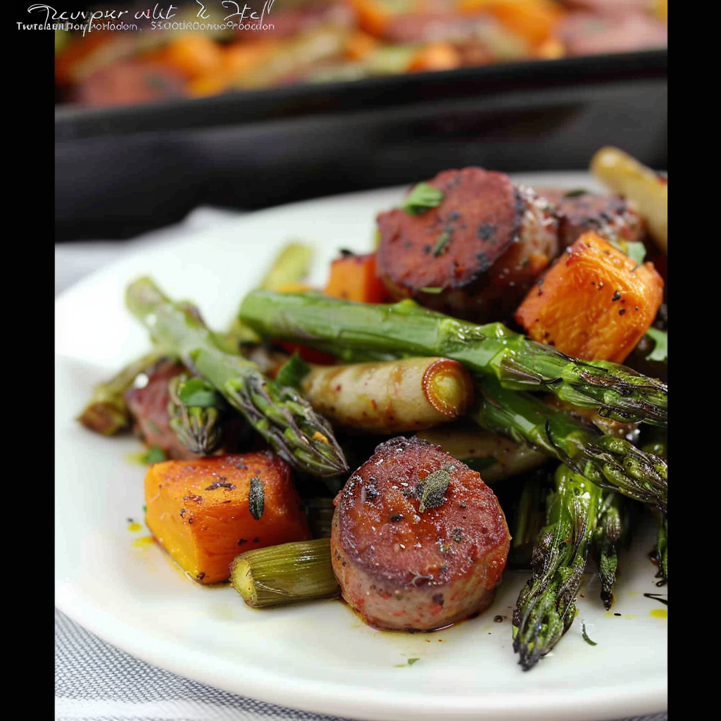 Easy Sheet-Pan Sausage, Sweet-Potato & Asparagus Dinner