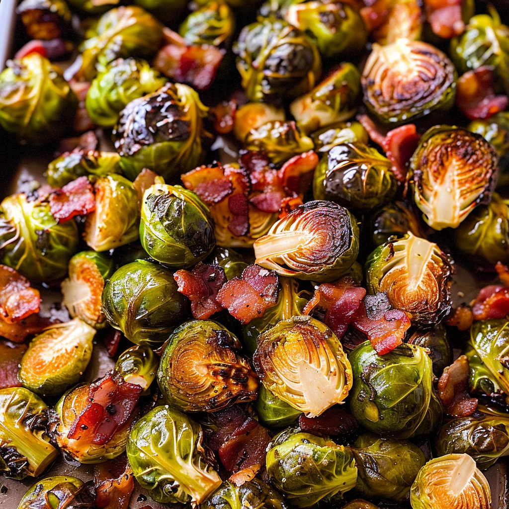 Crispy Roasted Brussels Sprouts with Bacon & Mustard Vinaigrette