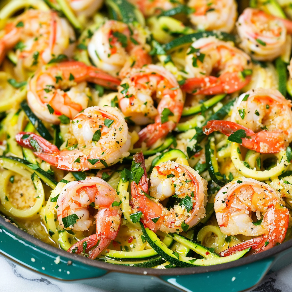Delicious Quick Low-Calorie Shrimp Scampi with Zucchini Noodles