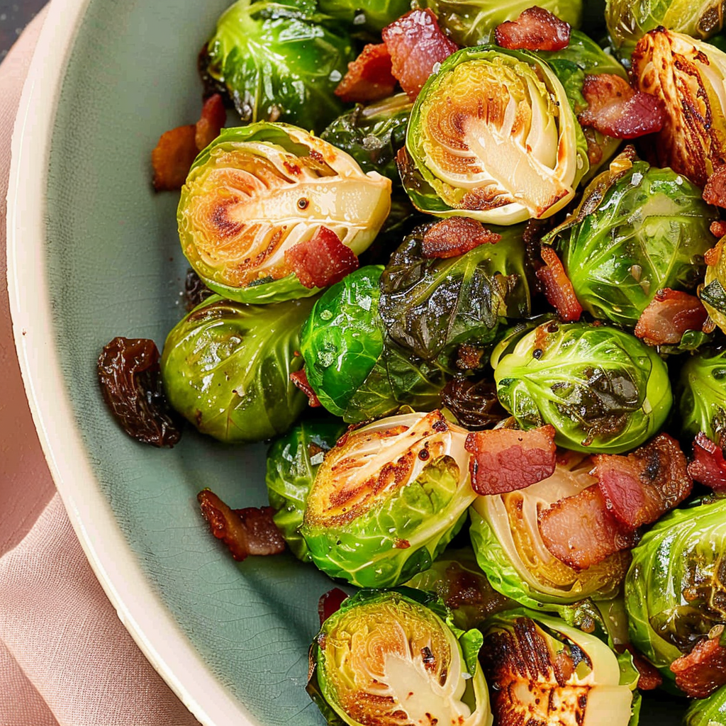 Irresistible Brussels Sprouts Lardons with Bacon & Raisins