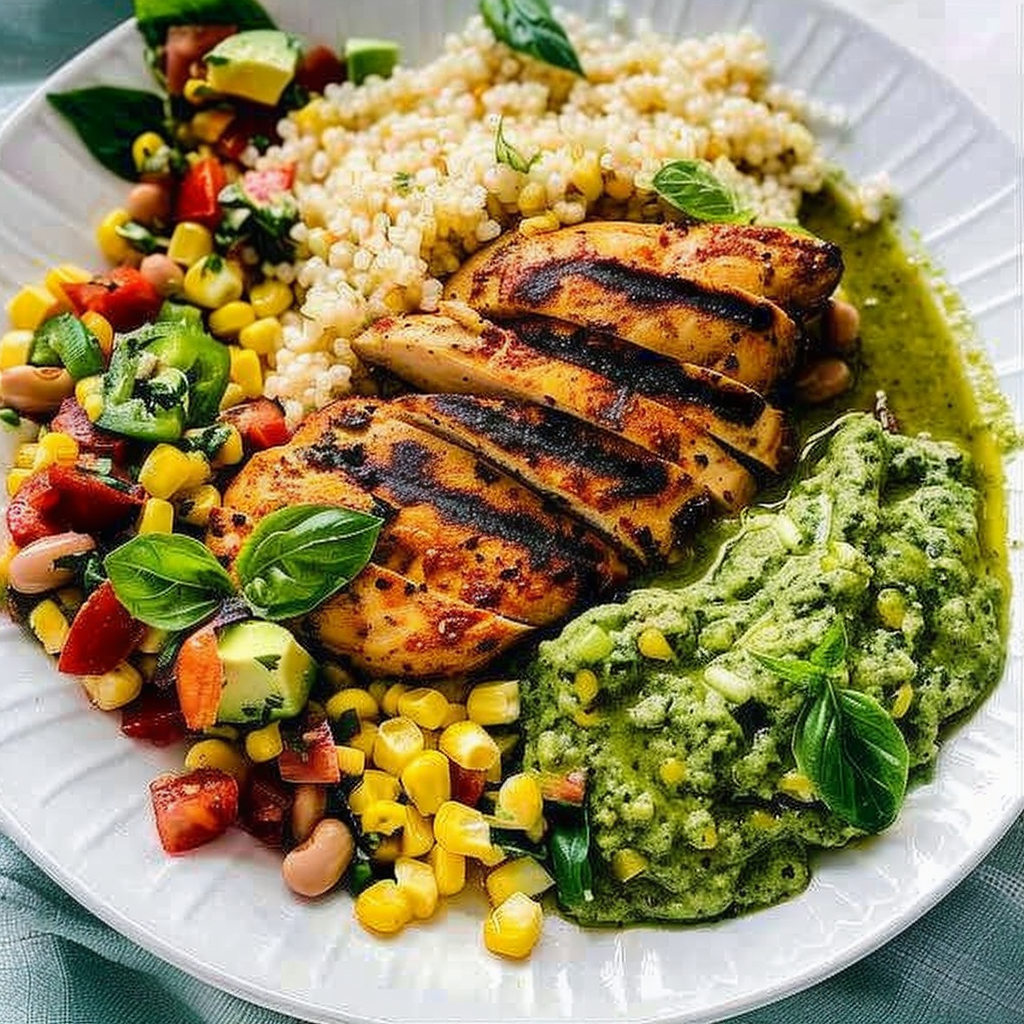 Irresistible Pesto Chicken with Corn & Bean Salsa Recipe