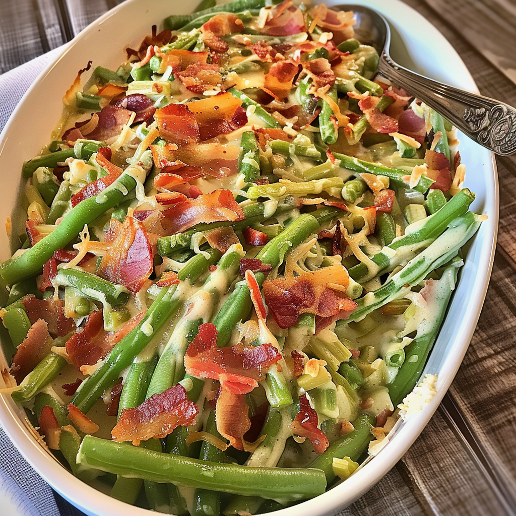 Irresistible Green Bean Mushroom Casserole with Candied Bacon