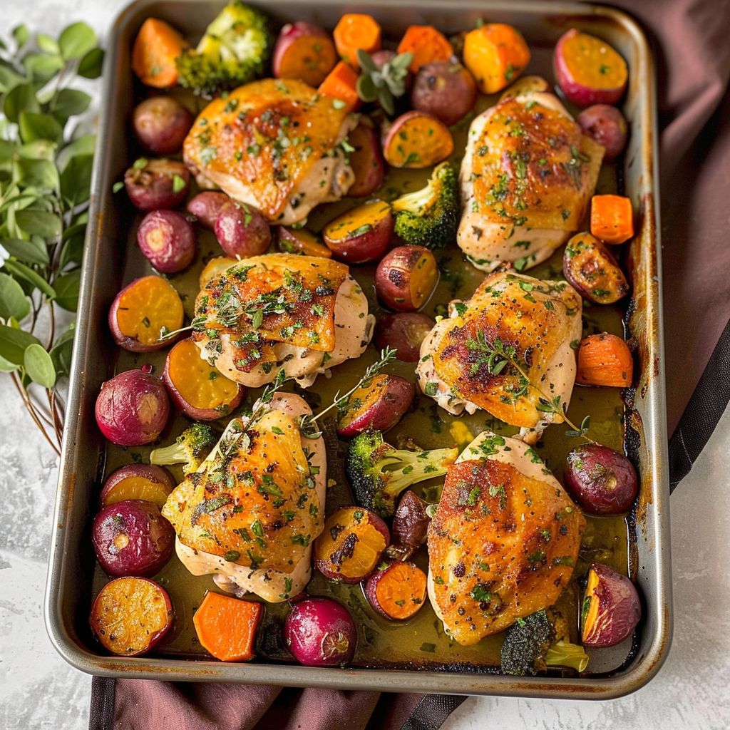 Yes, you can make Sheet-Pan Chicken & Root Veggies ahead of time. Prepare the chicken and veggies as instructed and store them in an airtight container in the refrigerator for up to 24 hours before baking. When you’re ready to eat, just place everything on a sheet pan and bake until fully cooked. This option is perfect for meal prep or busy weeknights when you want a nutritious dinner without a lot of fuss.
