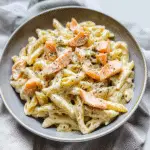 Keywords: For added flavor, consider substituting shrimp for salmon or incorporating sun-dried tomatoes. If you prefer a lighter option, use non-dairy cream or whole grain pasta. Store leftovers in an airtight container in the fridge for up to three days; reheat gently on low heat.