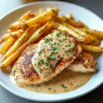 In conclusion, Chicken Fillet in Spicy, Creamy Garlic-Parmesan Sauce with Fries is a delightful dish that combines tender chicken and rich flavors. With easily accessible ingredients and straightforward steps, it’s perfect for both weeknight dinners and special occasions. Remember that preparation can be done ahead of time for convenience. Enjoy this savory meal alongside crispy fries for a delightful experience that will please everyone at your table!