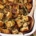 Growing up, my family made stuffing every holiday season, and it was always the star of the show. The laughter around the table and the irresistible scent made it a cherished tradition that I carry on today. Whether it’s Thanksgiving or just a cozy Sunday dinner, this Artisan Sourdough Stuffing brings everyone together for unforgettable moments.