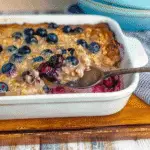 Your baked oats are ready when they turn golden brown on top and a toothpick inserted into the center comes out clean. If it’s still wet, give it a few more minutes in the oven while keeping an eye on it.