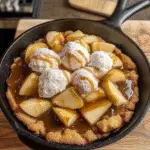 Start by preheating your oven while you mix the cookie dough. Once it’s ready, layer the apples and caramel in a skillet before adding the dough on top. Bake until golden brown for that perfect blend of chewy and crispy.