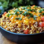 Whenever I whip up Cheesy Taco Rice, I’m reminded of those carefree afternoons spent at my friend’s house after school. We’d gather around her kitchen table, sharing stories, laughter, and way too many chips dipped in guacamole. This dish brings back those memories while also being incredibly versatile for any occasion. So let’s dive into this flavor adventure that promises to satisfy your cravings!