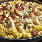 In summary, Chicken Bacon Ranch Pasta is a quick and satisfying meal that combines tender chicken, crispy bacon, and creamy ranch flavors over perfectly cooked pasta. With simple ingredients and minimal prep time, this recipe is perfect for busy weeknights or enjoyable family gatherings. You can customize it to your taste by adding vegetables or trying different cheeses. Whether you’re prepping ahead or making it fresh, this dish is sure to please everyone at the table!