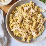 Once you’ve done all this, shred that glorious chicken right into the sauce and mix it all together gently before tossing your cooked pasta into the mix. Transfer to plates and drizzle any remaining sauce over for that perfect finishing touch!