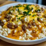 Garlic Butter Beef and Rice Skillet with Cheddar Parmesan Sauce is a comforting one-pan meal that effortlessly combines savory ground beef, fluffy rice, and a creamy garlic butter sauce. Perfect for busy weeknights or impressing guests, this dish is packed with flavor and requires minimal prep time. With its cheesy goodness from cheddar and parmesan, it’s sure to become a family favorite!
