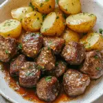 Garlic Butter Steak Bites and Potatoes are a quick and flavorful dish that brings restaurant-quality dining to your home. Tender steak bites are seared to perfection and tossed in rich garlic butter, accompanied by crispy roasted baby potatoes. Ideal for busy weeknights or special gatherings, this dish is sure to impress with its mouthwatering aroma and delightful taste.