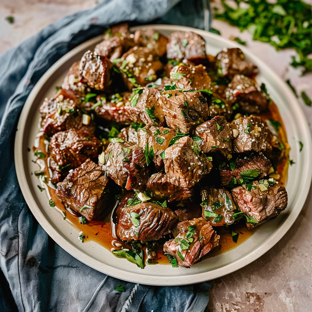 Keywords: - For added flavor, consider incorporating herbs like rosemary or thyme into the garlic butter. - Pair these steak bites with sautéed vegetables such as bell peppers or onions for a complete meal.