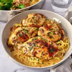 Yes, you can prepare Marry Me Chicken ahead of time! Cook the chicken and let it cool before refrigerating. When you’re ready to serve, gently reheat the dish on the stove over low heat until warmed through. If the sauce thickens too much during storage, add a splash of chicken broth or cream to restore its creamy consistency. This makes it perfect for meal prep or entertaining guests.