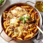 One-Pan Chicken Parmesan Pasta is a delicious, all-in-one meal combining tender chicken, pasta, and rich tomato sauce topped with melted cheese—all cooked together in one pan for maximum flavor and minimal cleanup.