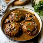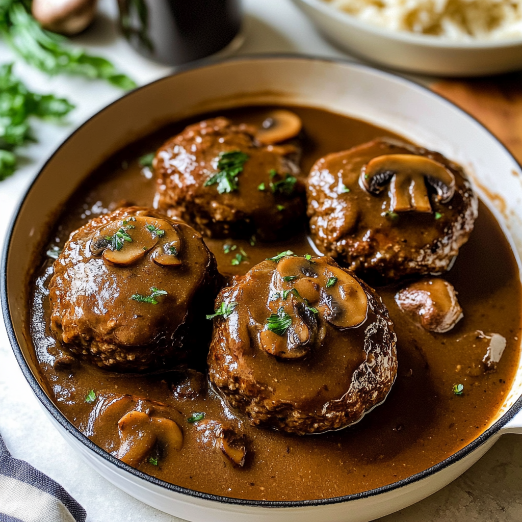 Salisbury steak is a classic comfort food that brings warmth to any dinner table. Juicy ground beef patties are seasoned and simmered in a rich, savory gravy, creating a dish that’s both hearty and nostalgic. Perfectly paired with creamy mashed potatoes or rice, this meal will transport you back to cozy family gatherings. Whether it’s a weeknight dinner or a special occasion, Salisbury steak is sure to impress family and friends alike!