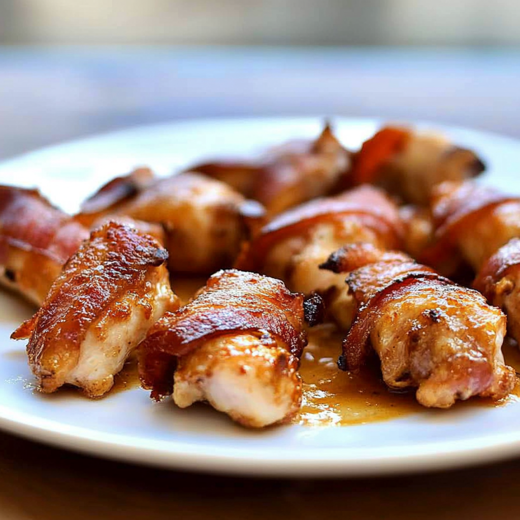 Drench and Bake!: Dip each bacon-wrapped chicken tender into the glaze until coated thoroughly. Place them on the prepared baking sheet and bake for 20-25 minutes until bacon is crispy and chicken is cooked through.
