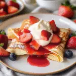 Strawberry Crepes are like little clouds of happiness wrapped around sweet, juicy strawberries. Imagine biting into a delicate crepe, the subtle sweetness melting in your mouth while the fresh strawberries burst with flavor. It’s a delightful experience that makes you feel as if you’re dining in a charming Parisian café, even if you’re just at home in your pajamas.