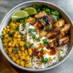 Start by marinating your chicken to infuse it with flavor. While the chicken is sizzling on the grill or in the pan, prep the rice and corn mixture. This sequence ensures everything finishes cooking simultaneously, maximizing flavor and freshness for your Street Corn Chicken Rice Bowl.