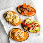 Keywords: - For added crunch, flip the sweet potato slices halfway through roasting. - Experiment with toppings like hummus, ricotta, or seasonal fruits for variety.