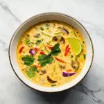 Thai Coconut Soup pairs wonderfully with jasmine rice or rice noodles. These sides absorb the delicious broth and complement the soup’s rich flavors. You can also serve it alongside fresh spring rolls or a light salad for a complete meal. Whether enjoyed on its own or as part of a larger spread, this soup always satisfies.