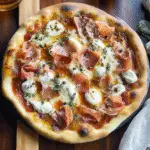 White Pizza with Prosciutto & Hot Honey is a delicious twist on traditional pizza. It features a creamy white sauce base, topped with fresh mozzarella, delicate slices of prosciutto, and a drizzle of spicy honey. This combination offers a perfect balance of savory and sweet flavors, making it a popular choice among pizza lovers seeking something unique.