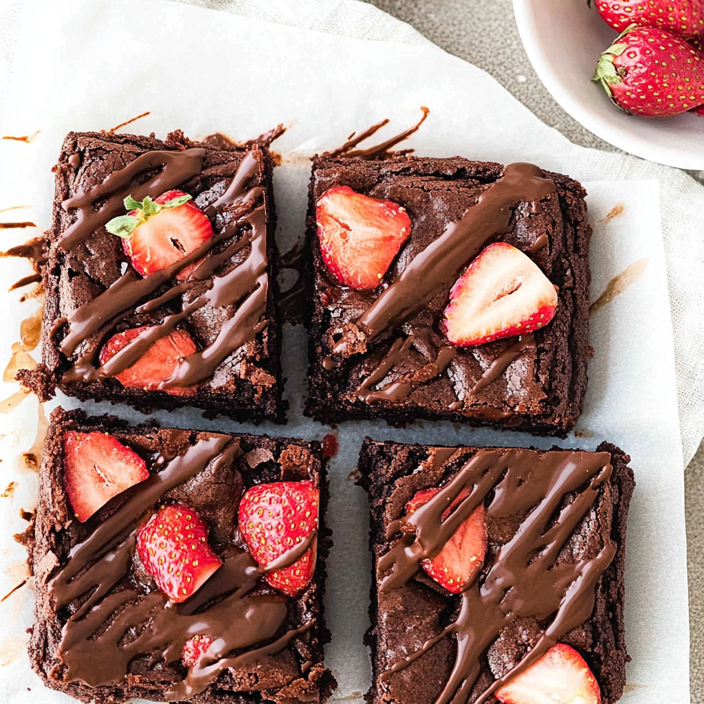 No-Bake Chocolate Strawberry Brownies are a delicious dessert made without baking! They consist of a rich chocolate base layered with fresh strawberries and chilled to perfection, creating a luscious treat.
