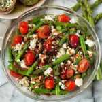 Asparagus, Tomato, and Feta Salad with Balsamic Vinaigrette is a refreshing dish that celebrates the flavors of spring. Crisp asparagus meets juicy cherry tomatoes and creamy feta, all drizzled with a tangy balsamic vinaigrette. Perfect as a side or light lunch, this vibrant salad not only looks stunning but also delivers an explosion of flavor that will impress your guests and elevate any meal.