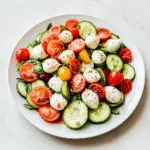 In summary, Fresh Cucumber Caprese Salad is a delightful and refreshing dish that combines simple ingredients to create an impressive presentation. By using ripe tomatoes, creamy mozzarella, crisp cucumbers, and aromatic basil leaves, you achieve a perfect balance of flavors and textures. This versatile salad is quick to prepare and can be customized according to personal preferences. Serve it at gatherings or enjoy it as a light meal during warm days for a burst of freshness that’s sure to please everyone!