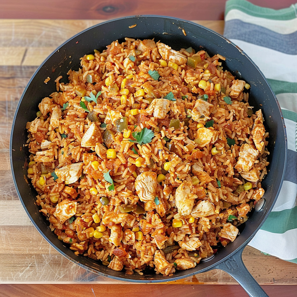 Keywords: - Customize by using ground turkey instead of chicken or quinoa instead of rice.- For added spice, incorporate jalapeños or hot sauce.- Store leftovers in an airtight container for up to three days.