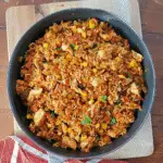Feel free to customize this dish! Swap out brown rice for quinoa or use ground turkey instead of chicken. Add black beans for extra protein or sprinkle fresh cilantro for a pop of color and flavor.